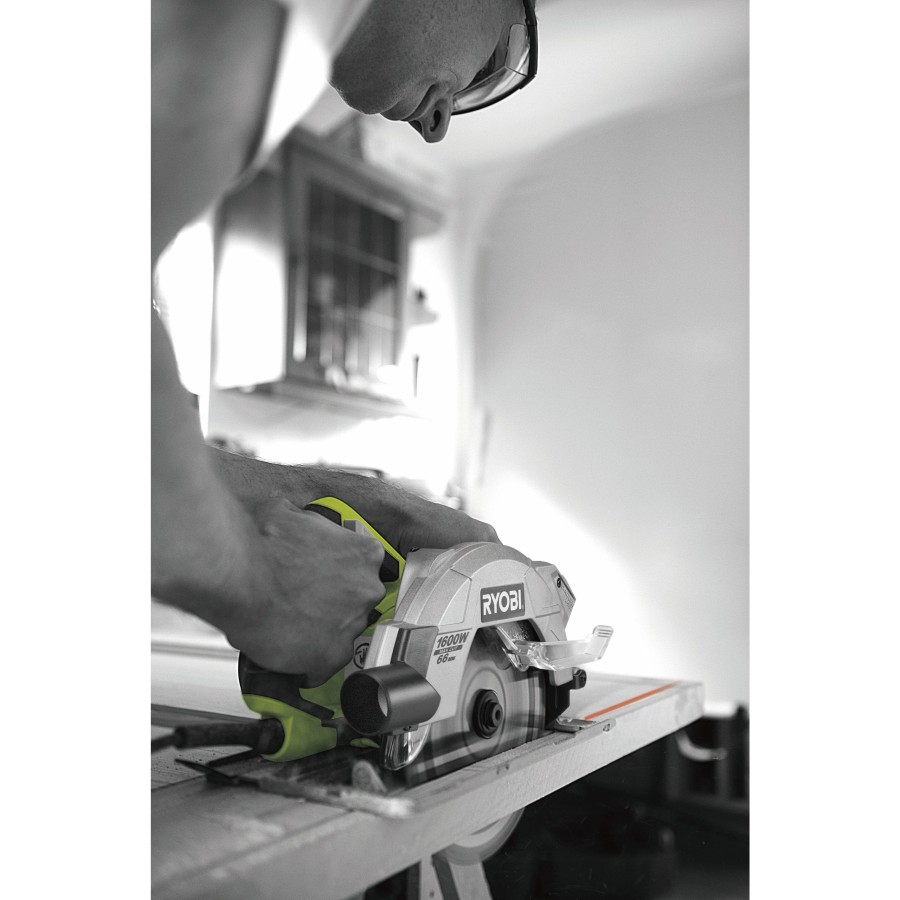 - Мощный двигатель 1600 Вт для быстрого реза пиломатериалов со скоростью 5000 об/мин